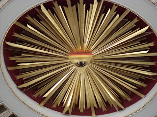 Pero además de las pinturas, en palacio me encontré por ahí al ojo omnisciente del gran arquitécto, que no, no es el de Marx, sino el ojo pizpireto de los masones.